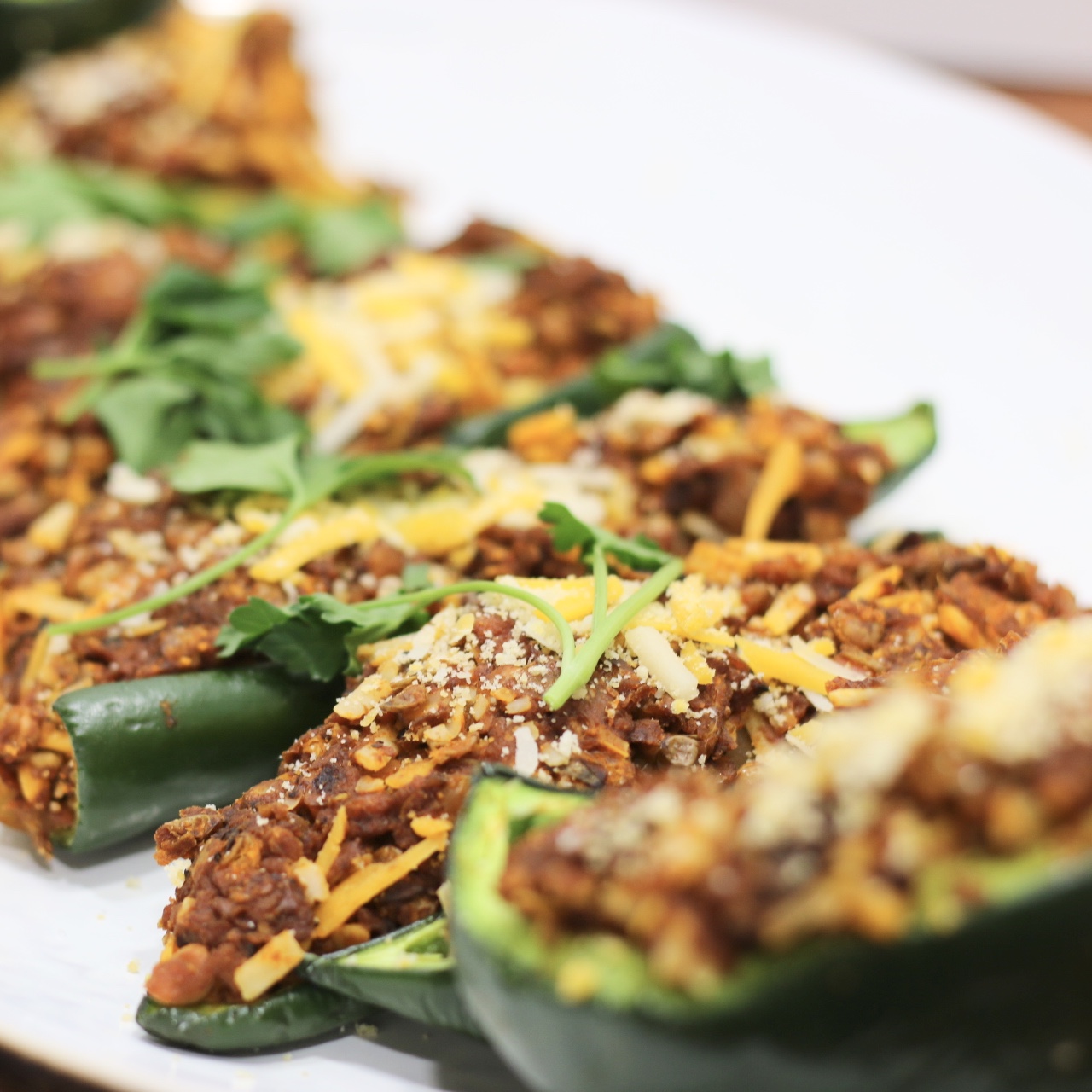 First things first, this recipe got a solid approval from a self proclaimed “picky non-vegan”, so yeah patting myself on the back. Originally this recipe was a twist on a Chile Rellano, then it kind of turned into a Mexican stuffed pepper. Either way, they’re delicious and full of protein!